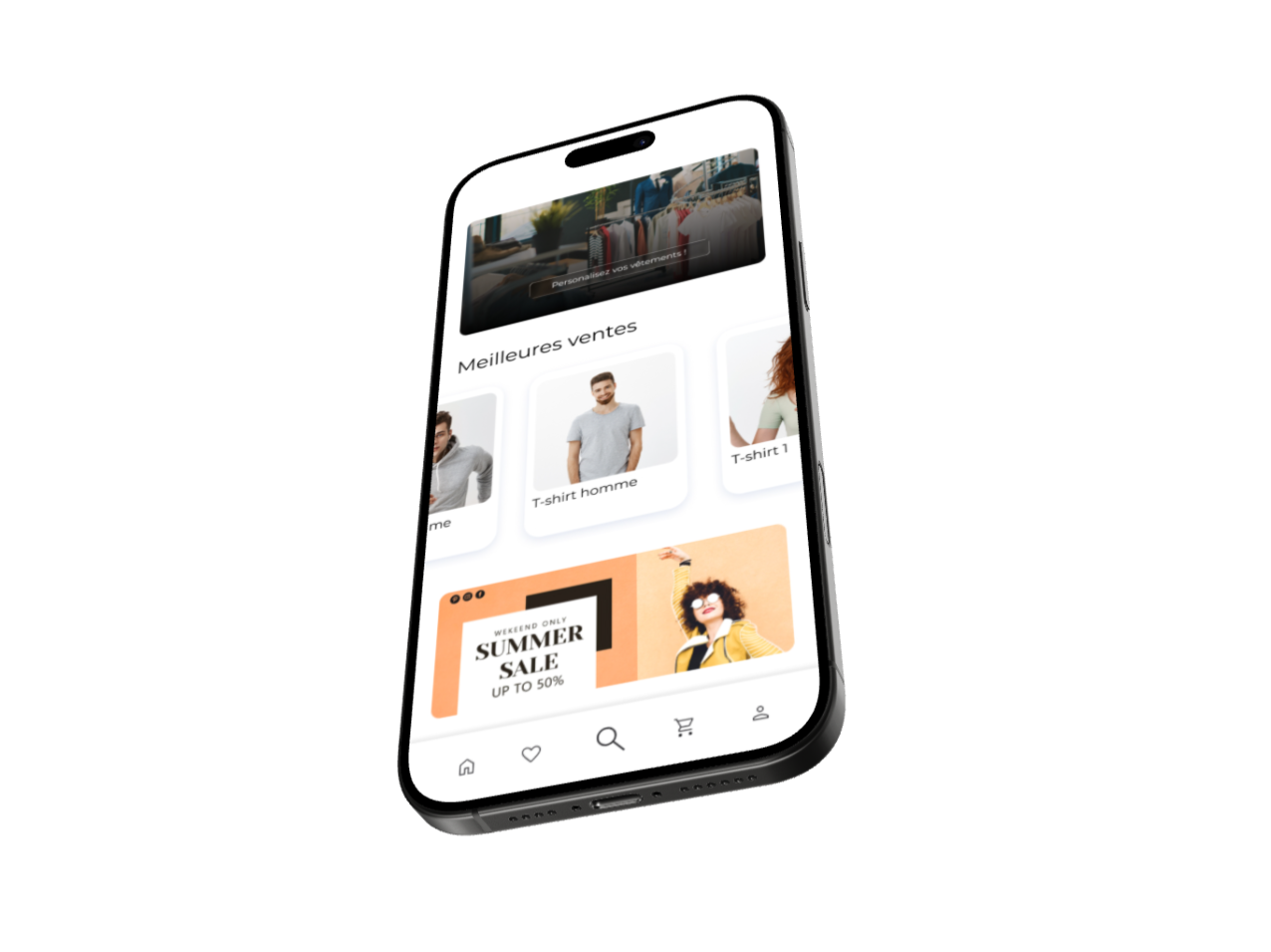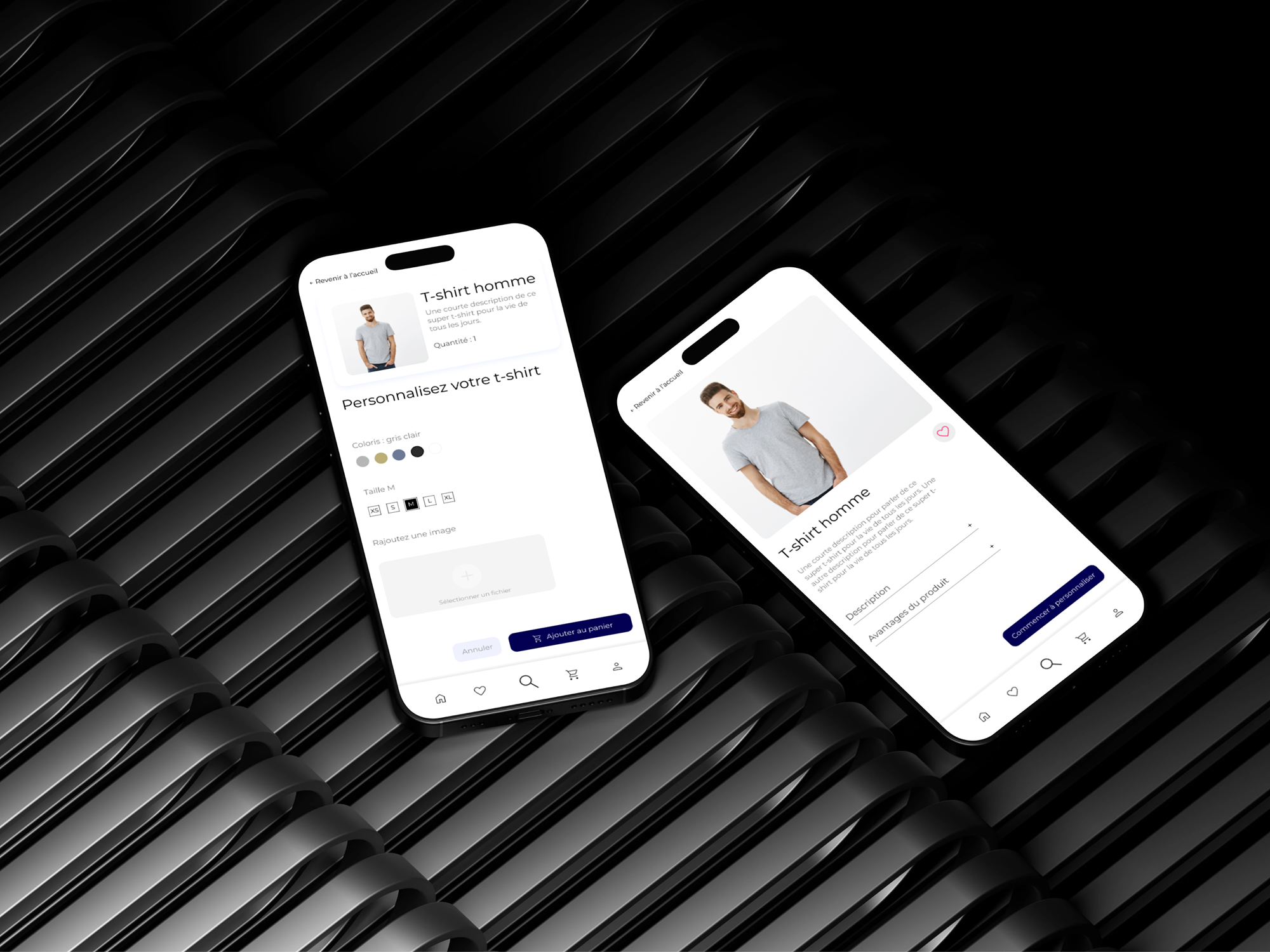 Maquette d'application de personnalisation de vêtements en ligne réalisée avec figma.